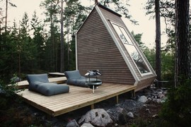 湖の畔のマイクロハウス コチラ、スウェーデンの某...
