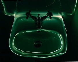 緑に浮かび上がる洗面台 こちら、一応ホントの洗面...