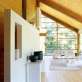 白基調のペンキ塗りの内装に、ダウンライトまで白で統一しておいて、そこに黒い窓枠を持ってきています。