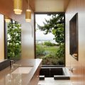 大きな窓からふんだんに光が差し込む明るく開放的なダイニングに、アースカラー系の落ち着いたインテリア。